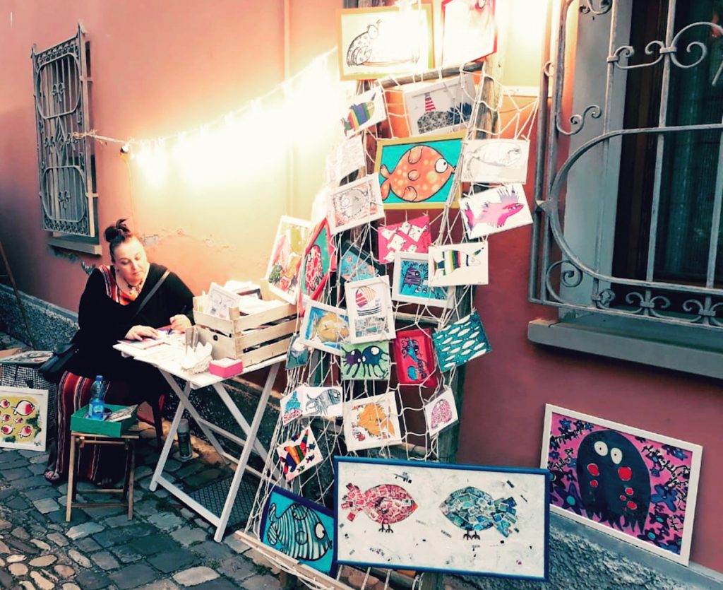 Come se ogni individuo su questa terra avesse la possibilità di vedersi dentro, rimanendo dentro. Come se ci fossimo solo noi, soli, e nessun altro di voi, di loro. Ci siamo tutti, non per strada, ma ci siamo. Questa la mia prima volta sulla stradina di ciotoli, dietro le barche, il profumo del pesce. Io con una rete, un tavolino. Adesso a casa pesco idee nuove per ricominciare, non sola, ma insieme a tutti voi, tutti noi.